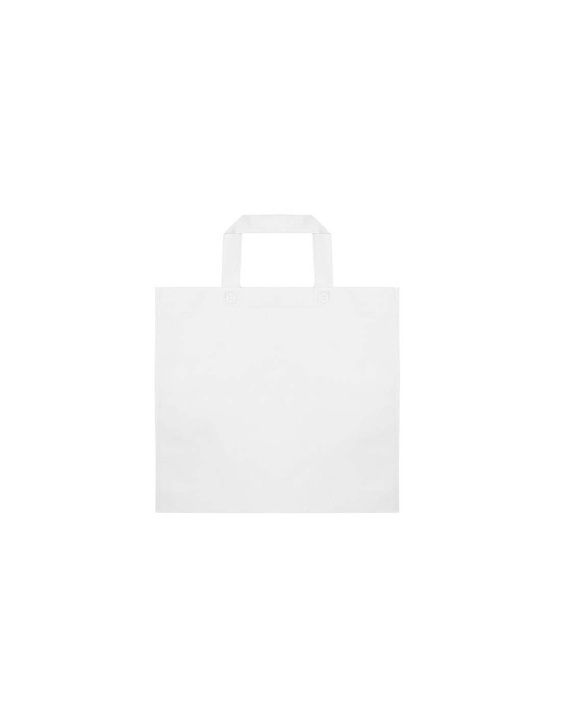 Shopper in tessuto non tessuto 80g/m², manici corti da 35 cm rinforzati e finitura termosaldata.