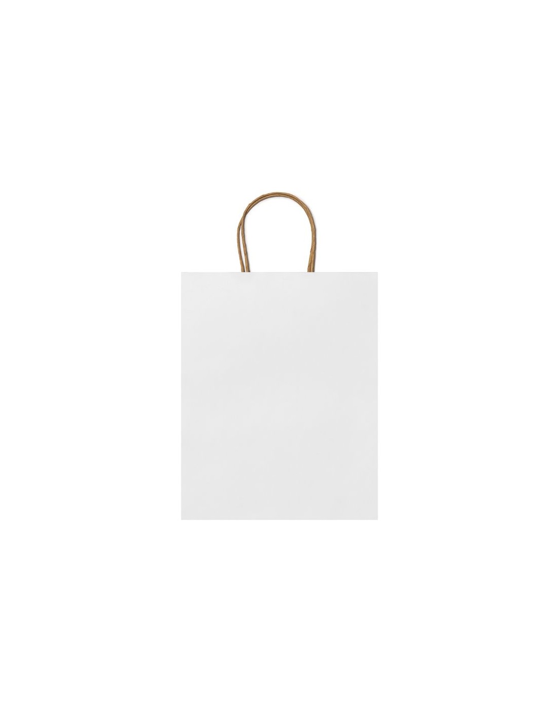 Borsa di carta in finitura naturale 110gr/m2, manici corti, rinforzati ed arricciati.