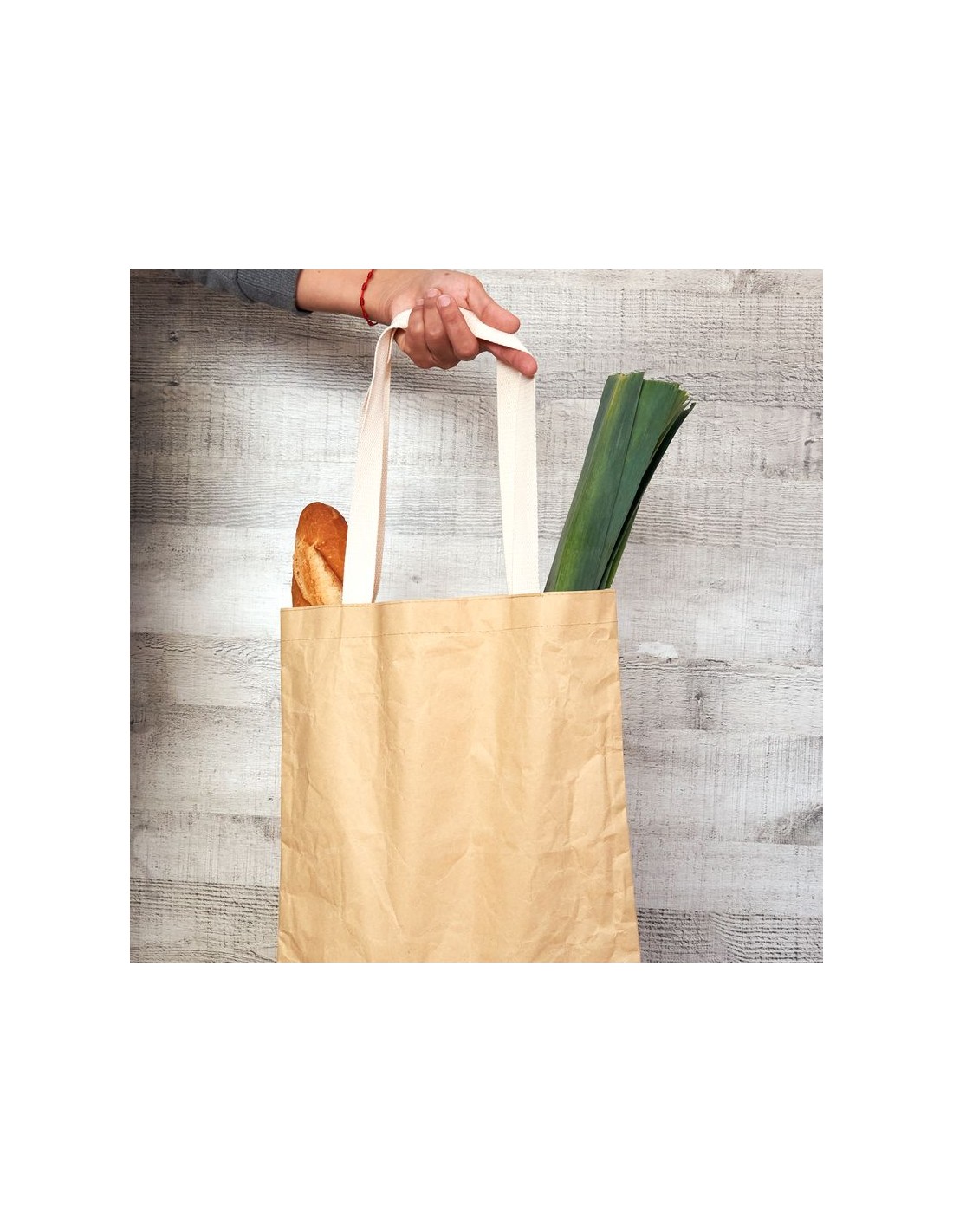 Sacchetto di carta kraft con due manici in cotone da 64 cm, resistenza: da 6 a 7 kg. di peso.