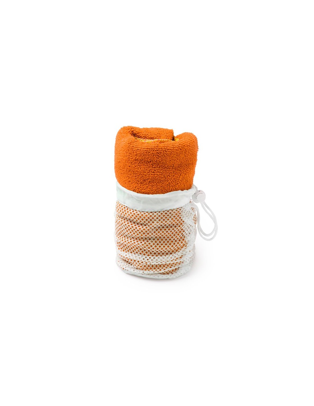 Asciugamano assorbente in microfibra da 185 g/m², include una custodia per il trasporto con chiusura regolabile, disponibile in vari colori.