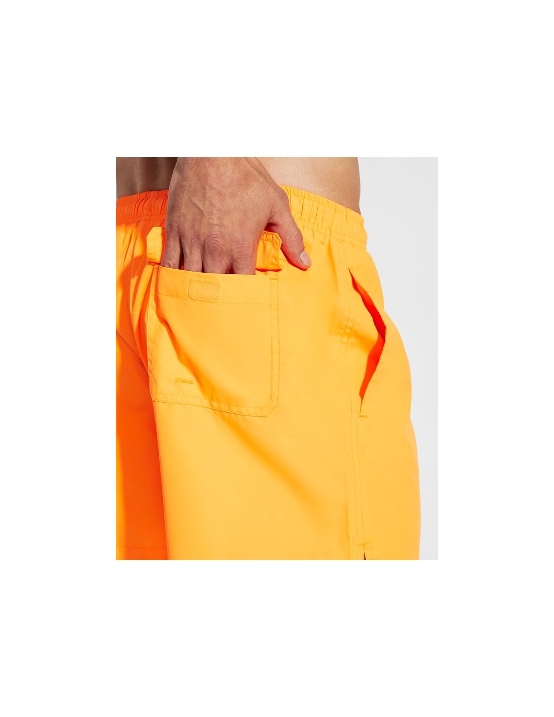 Costume da bagno, 2 tasche laterali, laccio regolabile in tinta, taschino sul retro con pattina di chiusura, apertura laterale, cuciture doppie con filato secondo il colore del tessuto, slip interno, tasche con retina interna.
