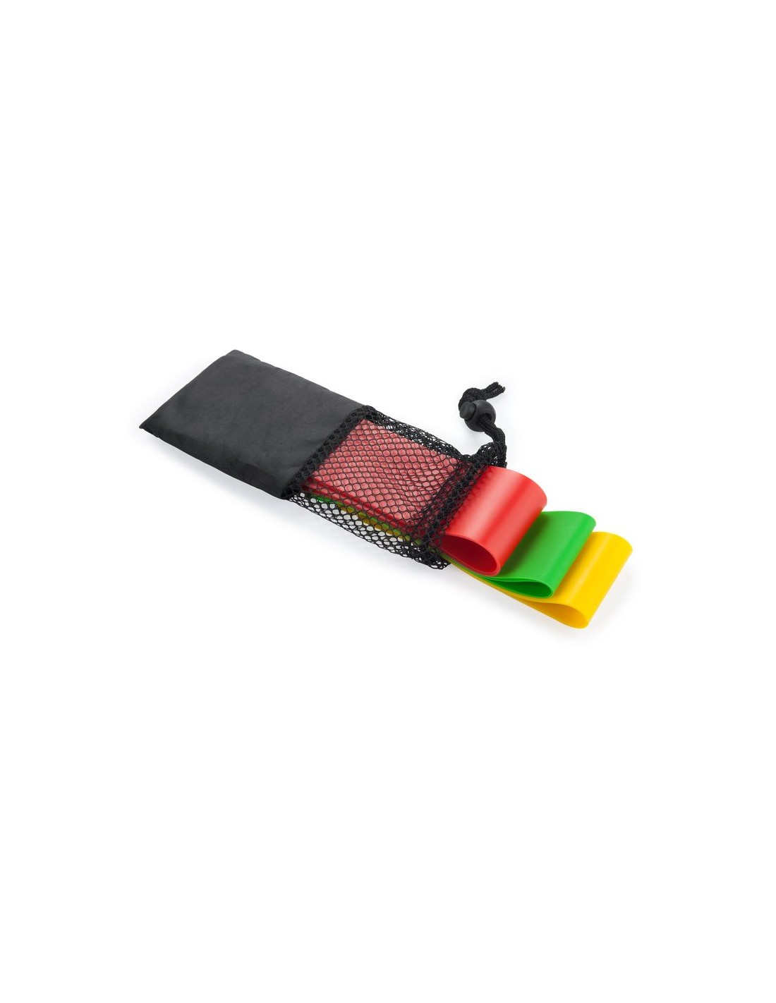 Set fasce elastiche fitness di diversa tensione, custodia in poliestere, fasce in latex.