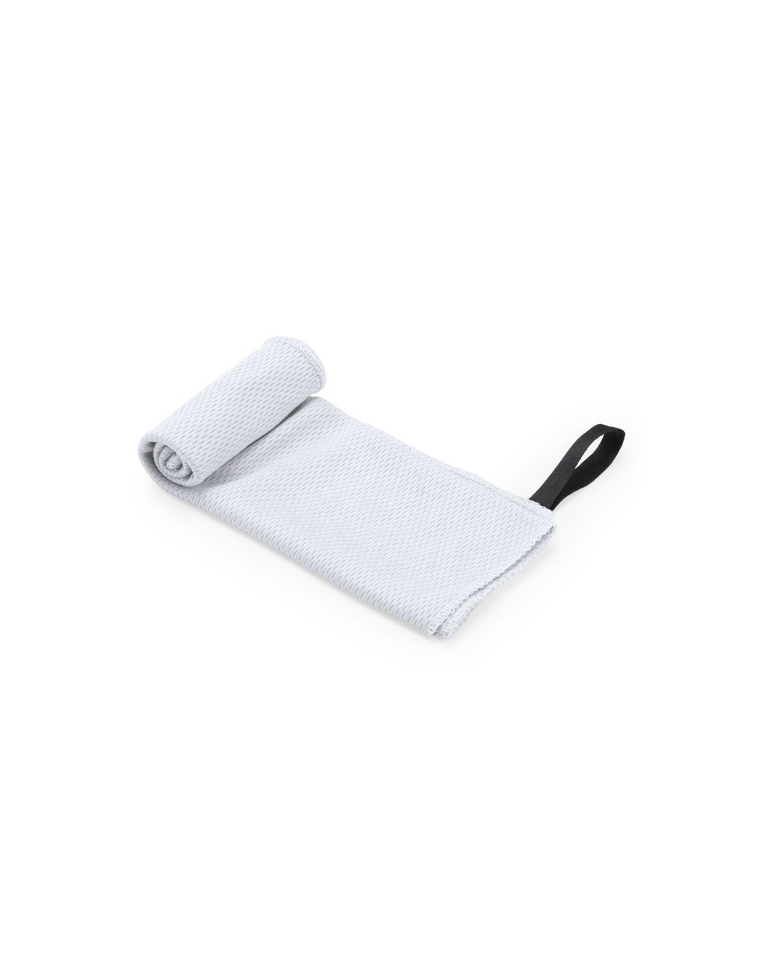 Asciugamano in microfibra con pratica custodia con moschettone, asciugamano 30x30cm.