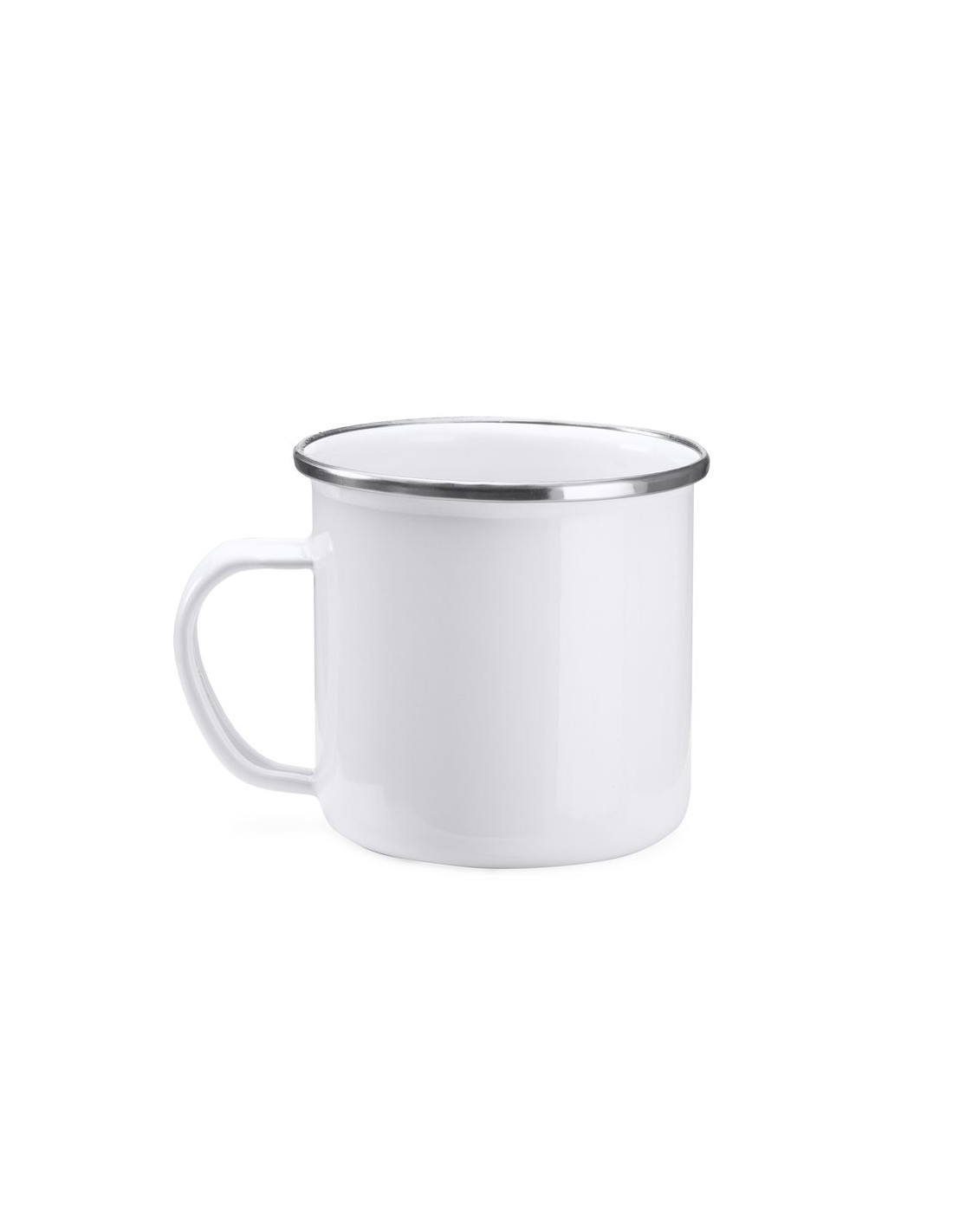 Tazza di metallo smaltato da 380 ml con bordo d'argento e rivestimento speciale per la sublimazione, stile retrò, confezione in scatola bianca.