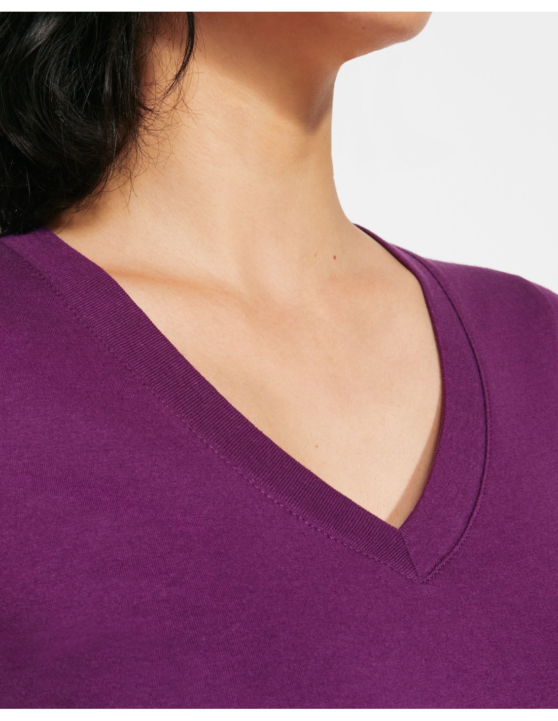 T-shirt manica corta con scollo a V, collo e finiture in costina. Modello slim fit e cuciture laterali.