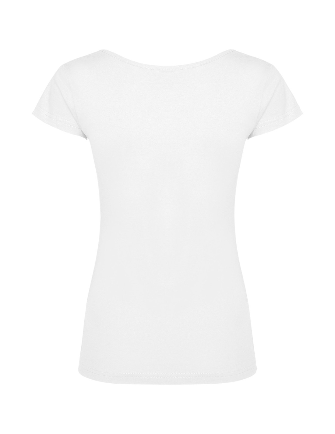 T-Shirt manica corta, scollatura tonda, rifinita e pronunciata. Cuciture laterali e taglio aderente.