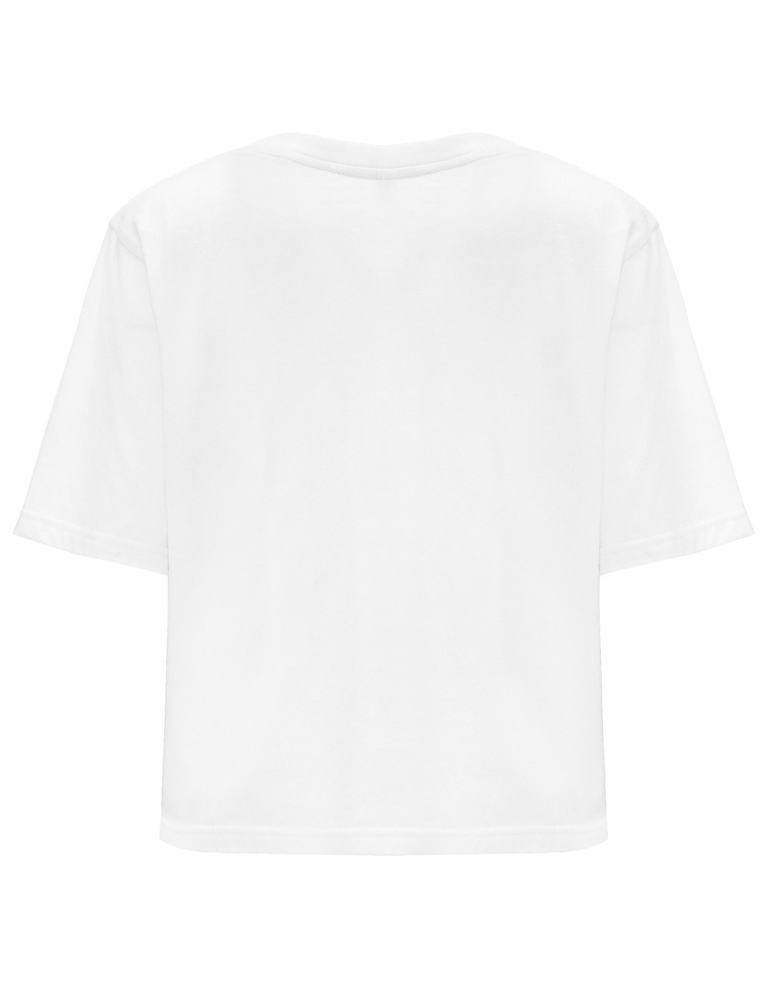 T-shirt dal taglio corto e largo per donna, girocollo con bordo largo in costina 1x1, copri cuciture rinforzate in tinta.