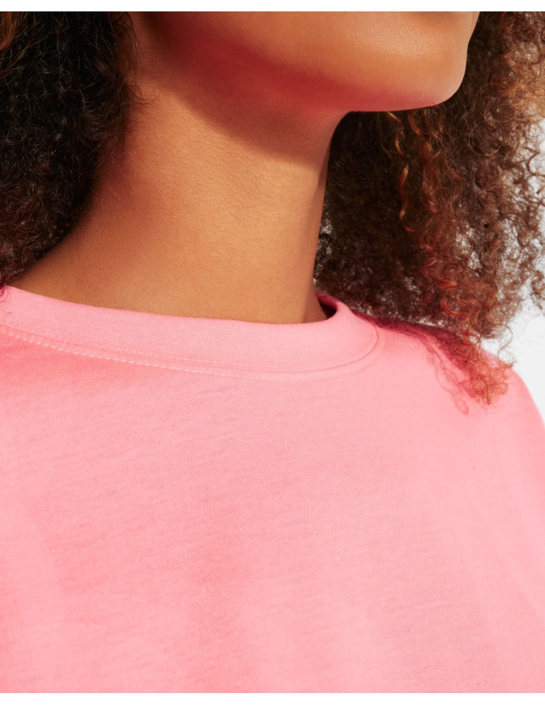 T-shirt dal taglio corto e largo per donna, girocollo con bordo largo in costina 1x1, copri cuciture rinforzate in tinta.