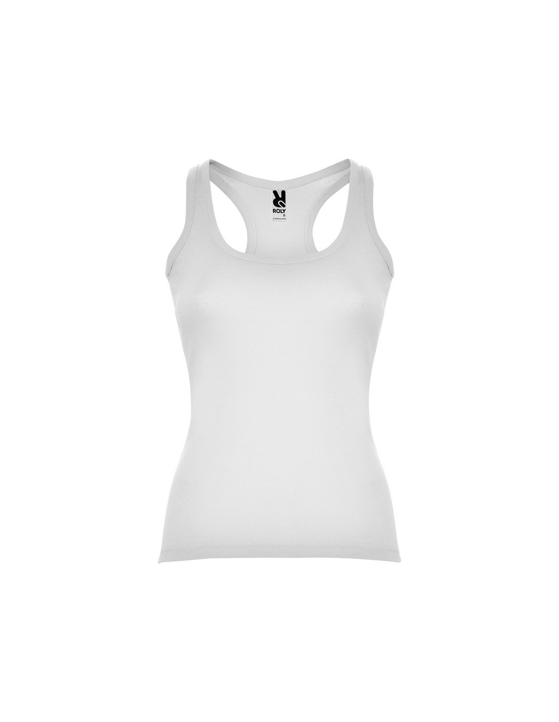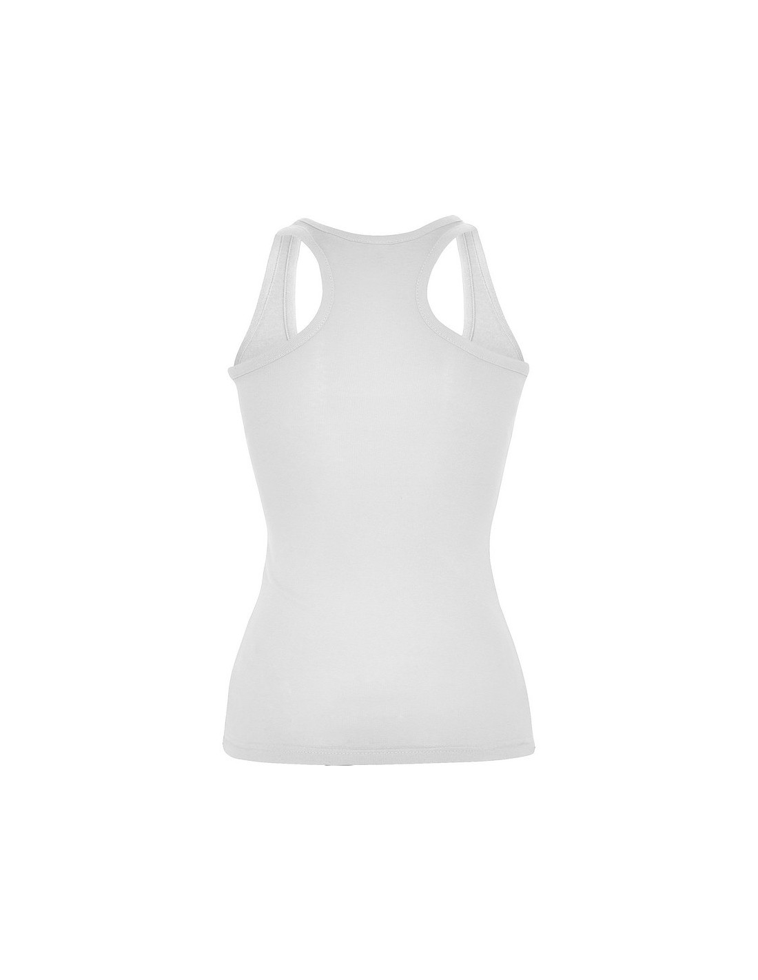 Canotta aderente, giromanica e scollatura orlata, spalline sul retro stile vogatore, cuciture laterali.