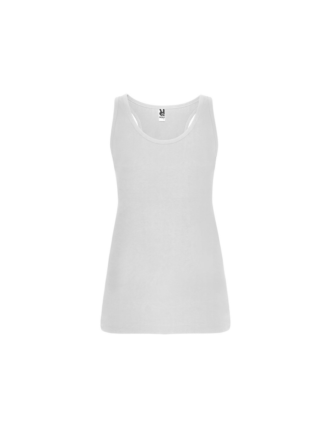 Canotta donna taglio slim, con giromanica e scollo rifinito, retro stile vogatore e cuciture laterali.