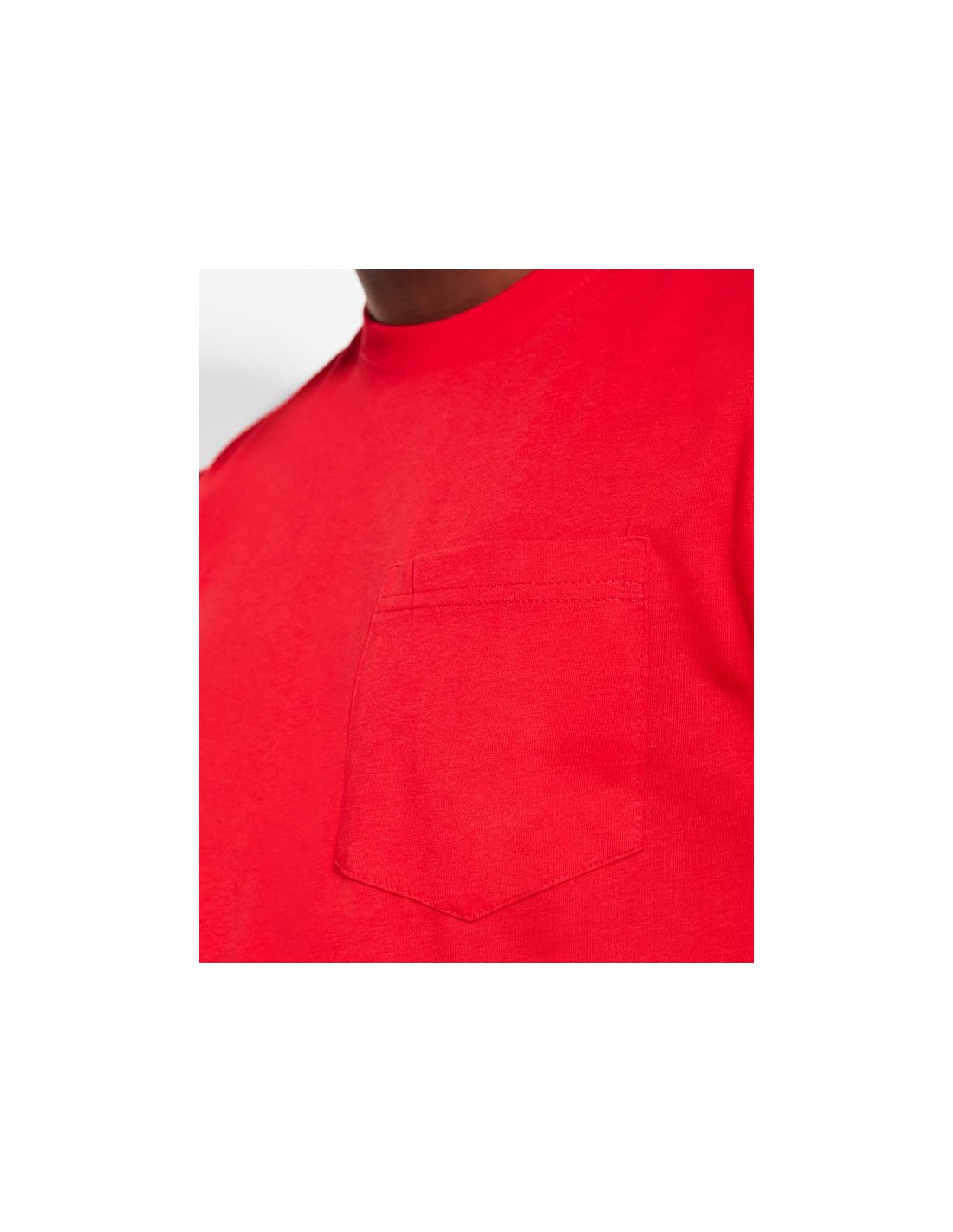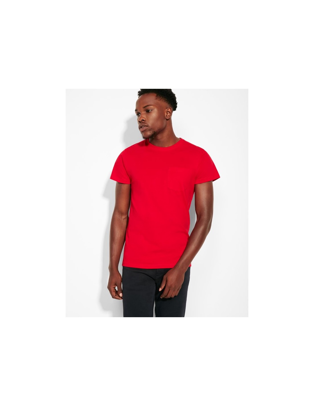 T-shirt girocollo manica corta e girocollo 4 strati, copri cuciture rinforzate su collo e spalle, cuciture laterali e taschino anteriore.