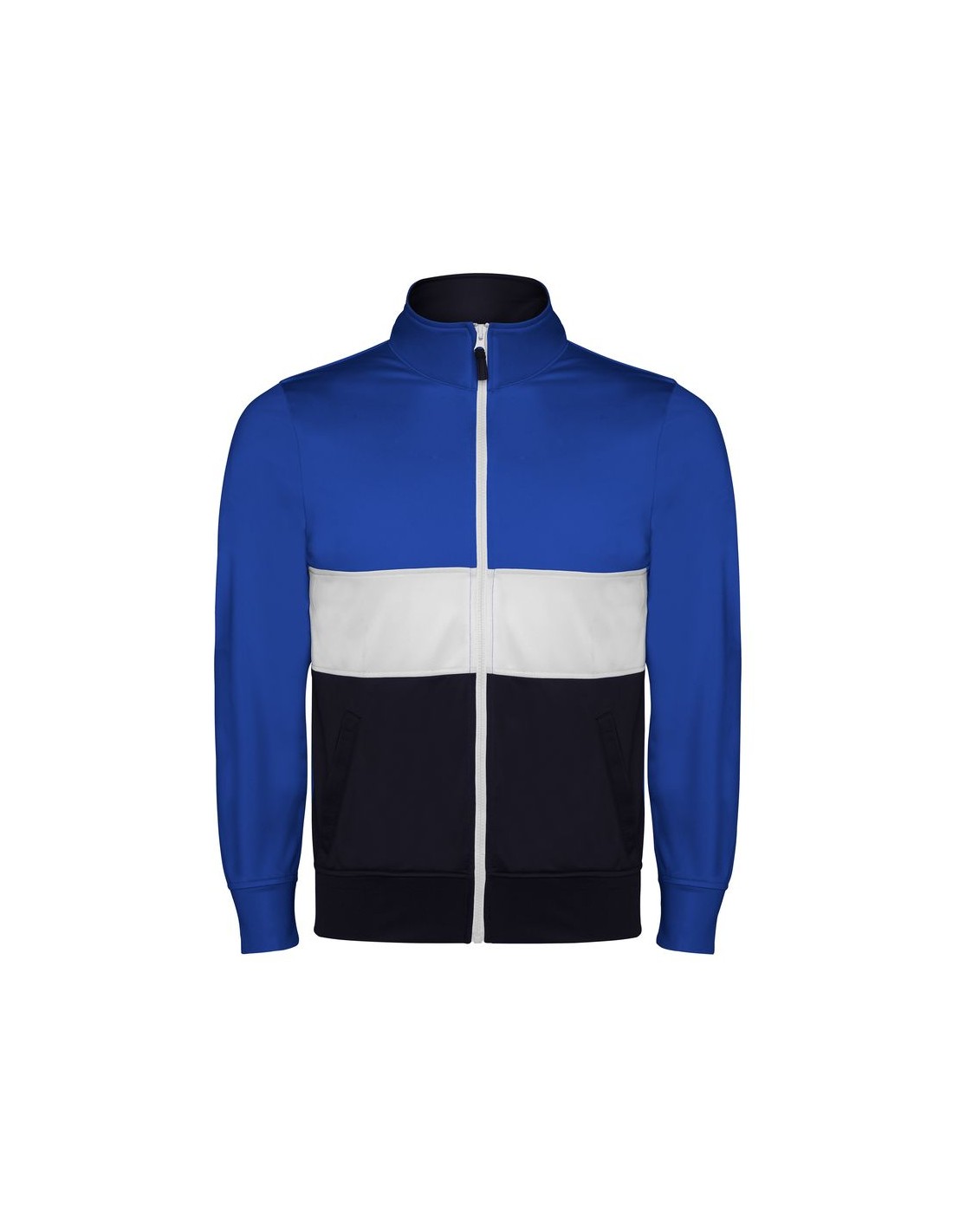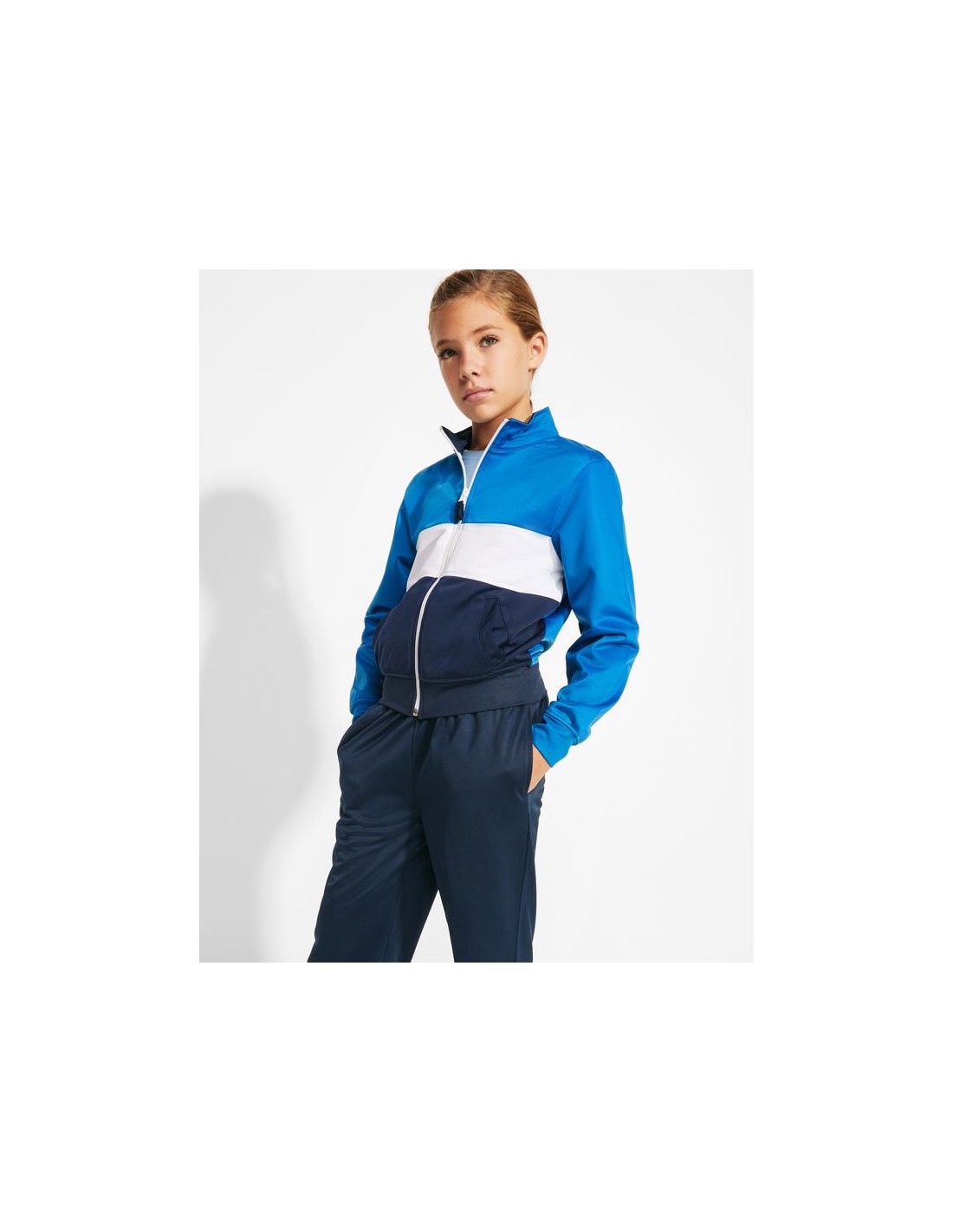 Tuta composta da giacca e pantalone, collo alto, tasche frontali in colore a contrasto. 3- Polsini e cintura in costina 1x1. 4- Zip centrale con copri cuciture interne in ccolore a contrasto. 5- Pantalone con girovita elastico e cordone regolabile con cuciture di sicurezza anticaduta e con due ampie tasche laterali. 6- Tessuto interno in velluto molto confortevole.