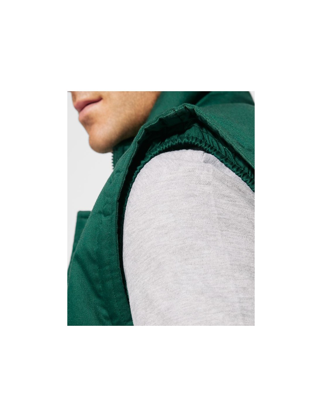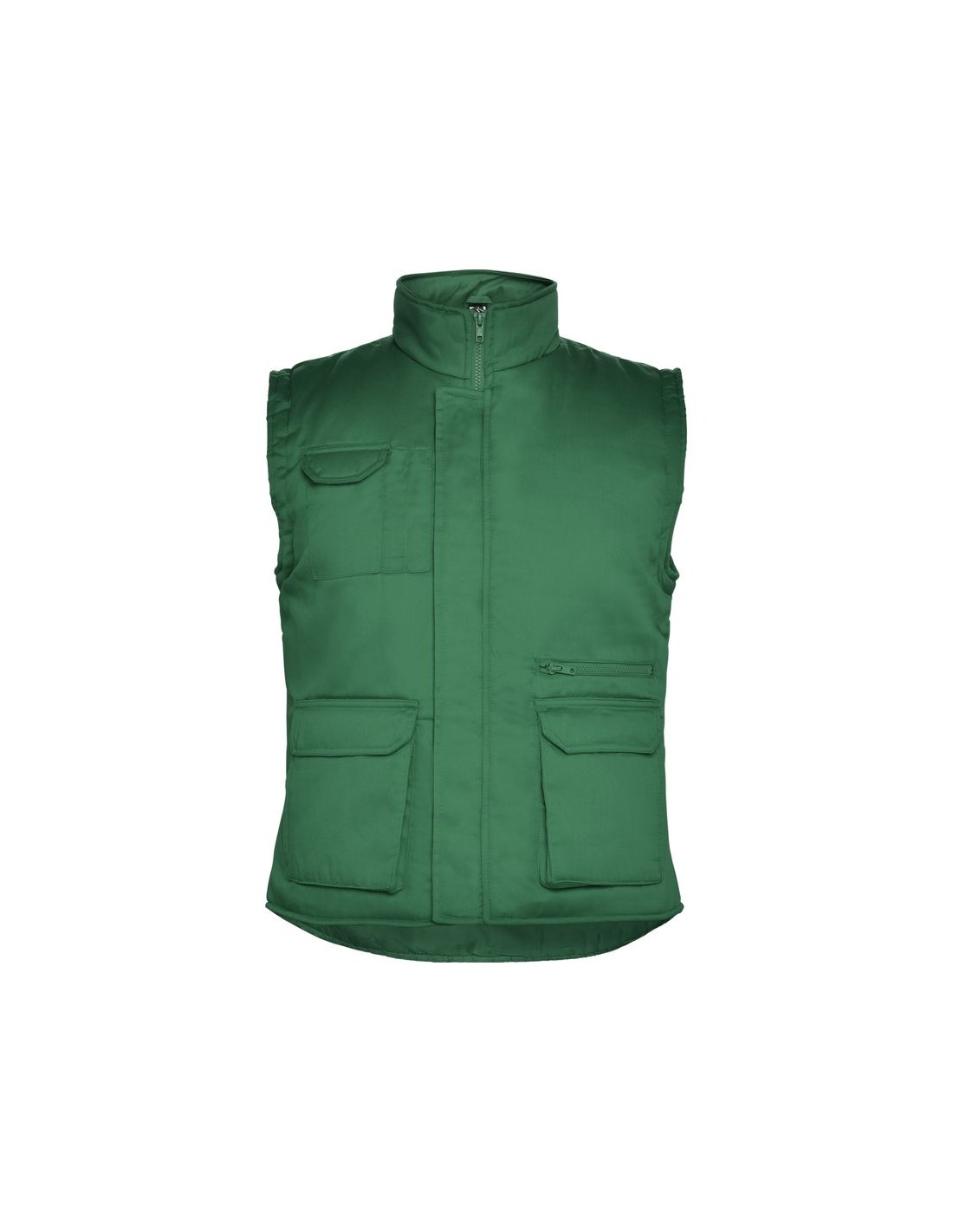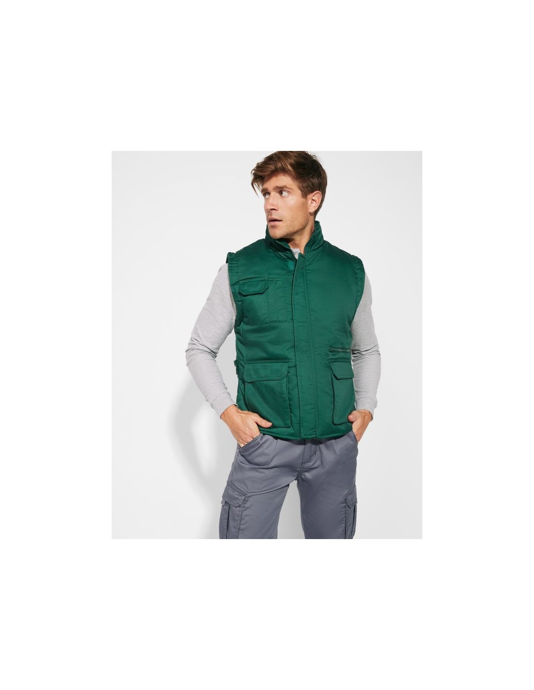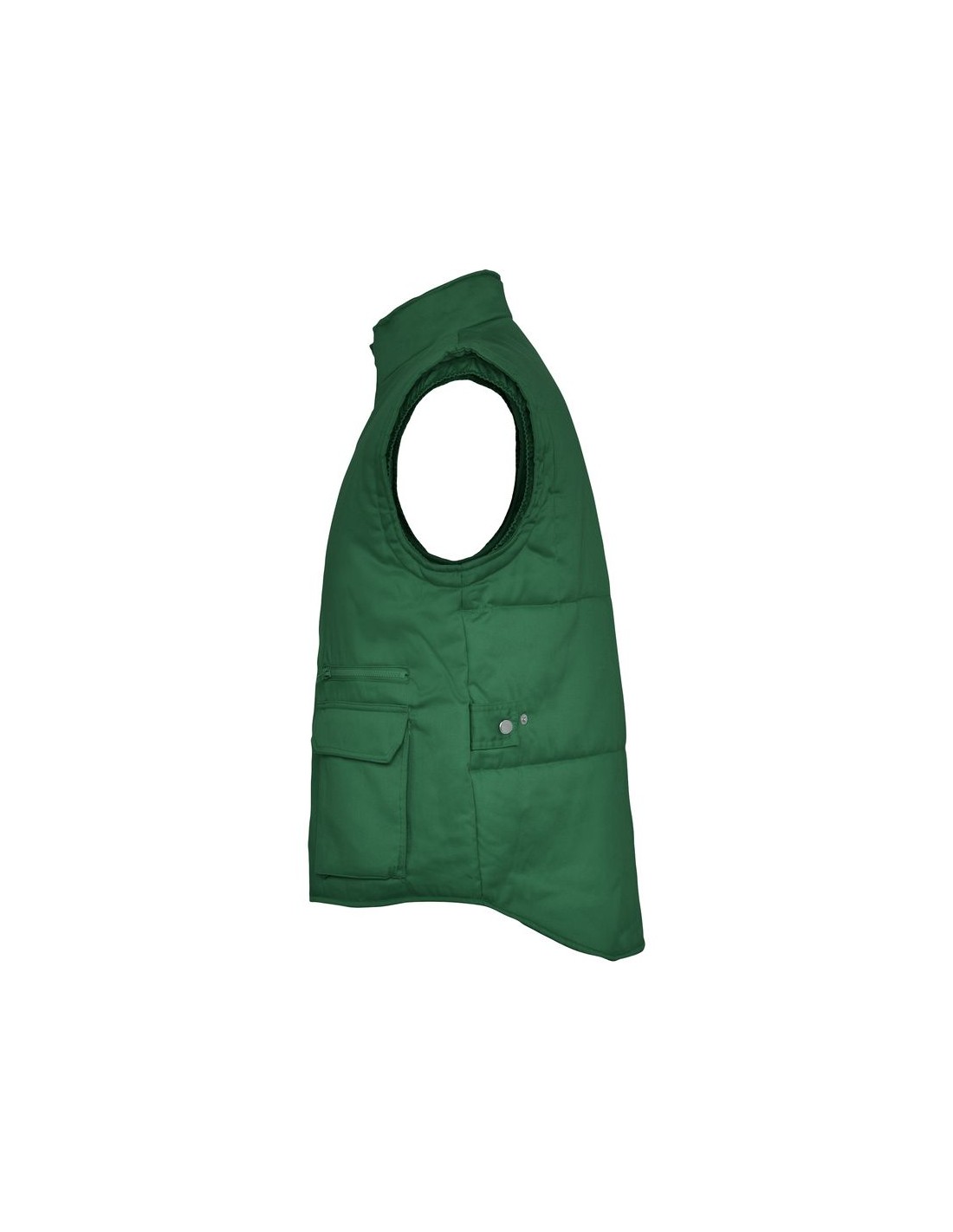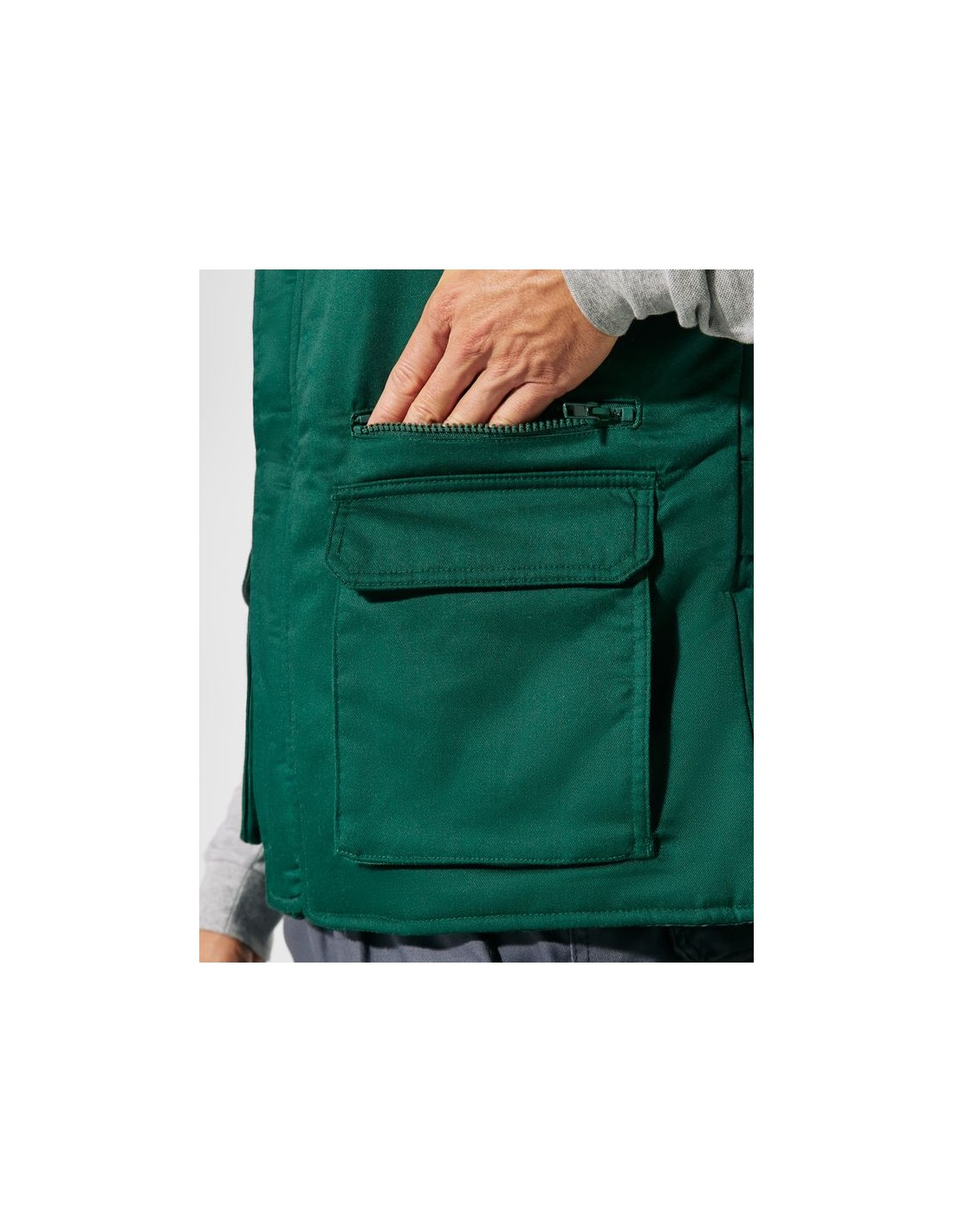 Gilet da lavoro con tasca interna in velcro, cerniera centrale con tiretto e velcro, una tasca esterna sul lato destro, due tasche frontali con soffietto e apertura laterale, due taschini portapenne, tasca con zip, una tasca interna con velcro, maniche anti vento, orlo posteriore ribassato, regolatore con chiusura automatica.