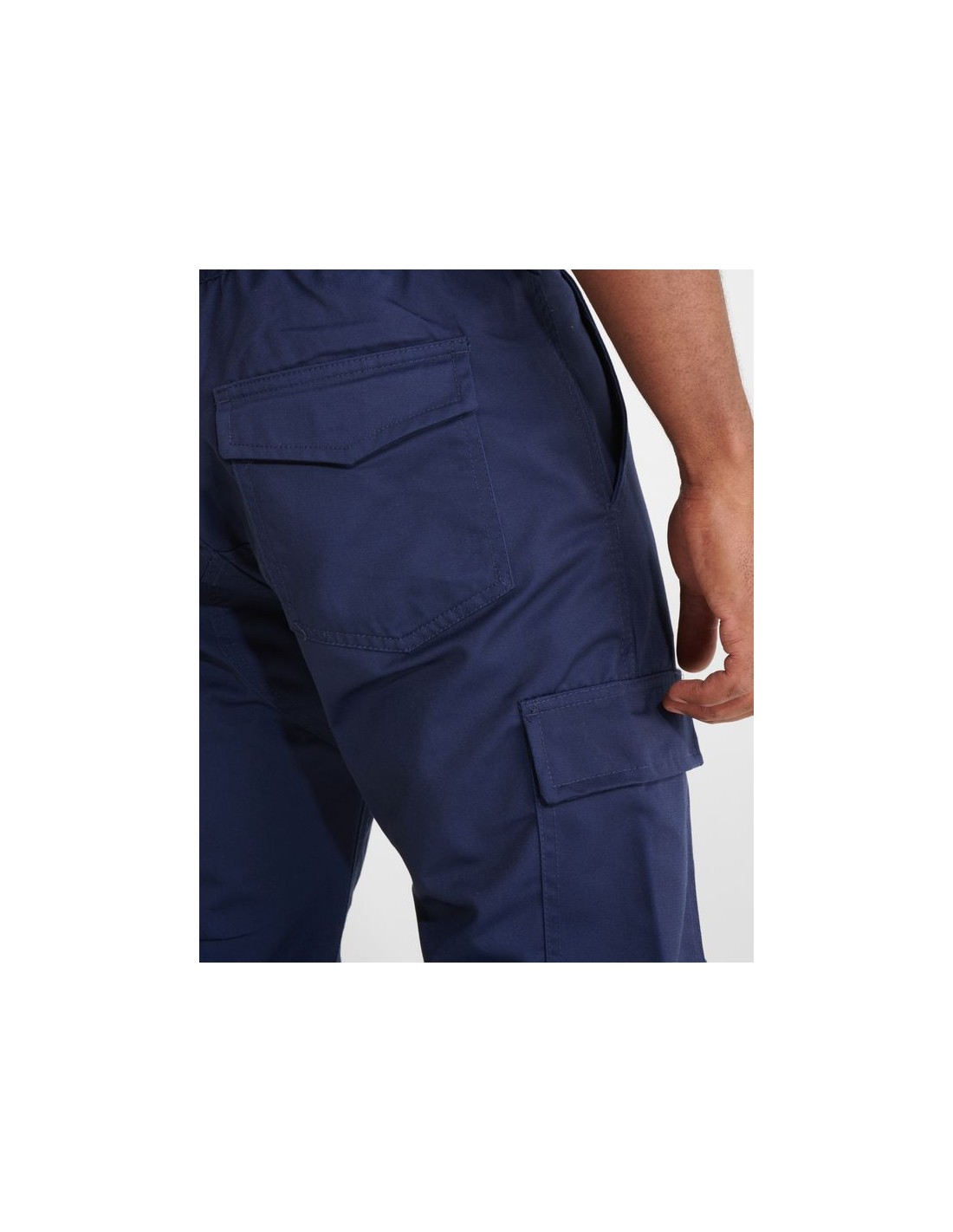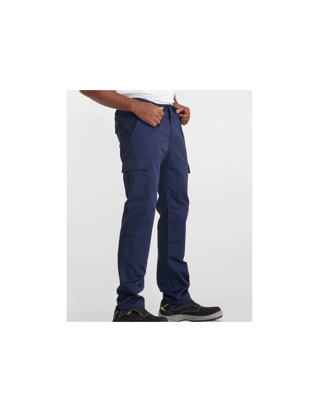 Pantalone lungo di tessuto resistente. Girovita regolabile elastica nella parte posteriore, due tasche frontali, una tasca laterale a soffieto con copritasca e chiusura in velcro, due tasche multiuso nella parte posteriore con copritasca e chiusura in velcro, cavallo doppio rinforzato. 6.- Una tasca multiuso nella parte posteriore laterale, tasca laterale destra stretta senza copritasca.