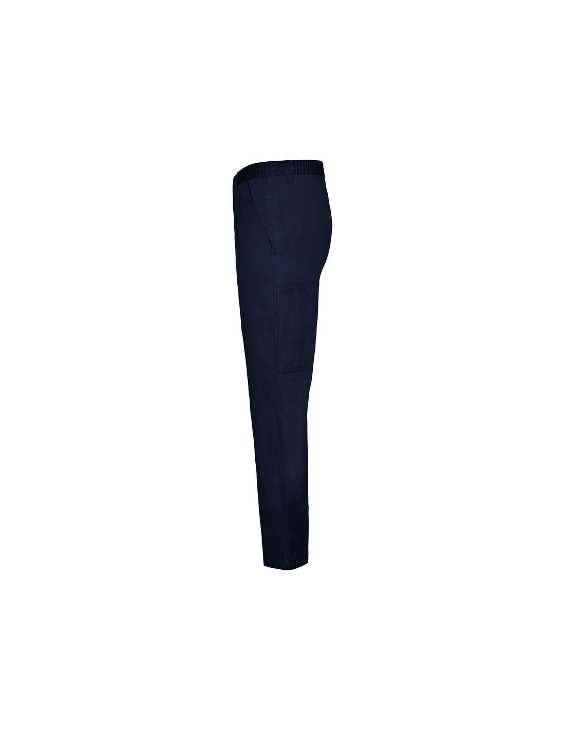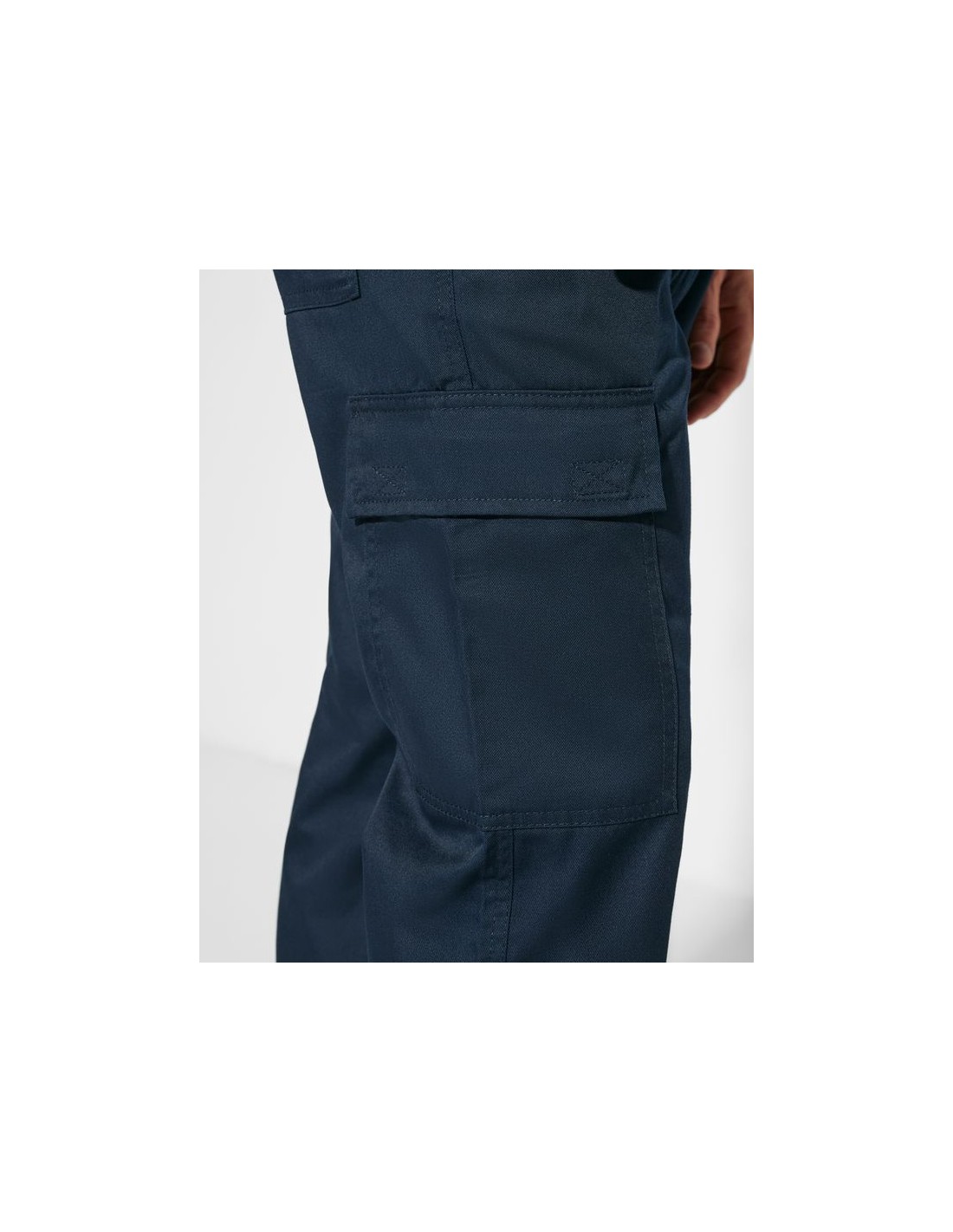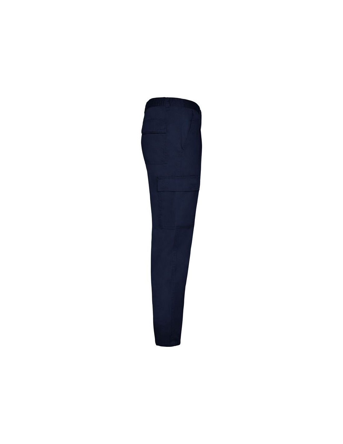 Pantalone lungo di tessuto resistente, girovita regolabile elastico nella parte posteriore, due tasche frontali, una tasca laterale a soffieto con copritasca e chiusura in velcro, una tasca laterale sinistra senza copritasca, una tasca laterale destra con copritasca.