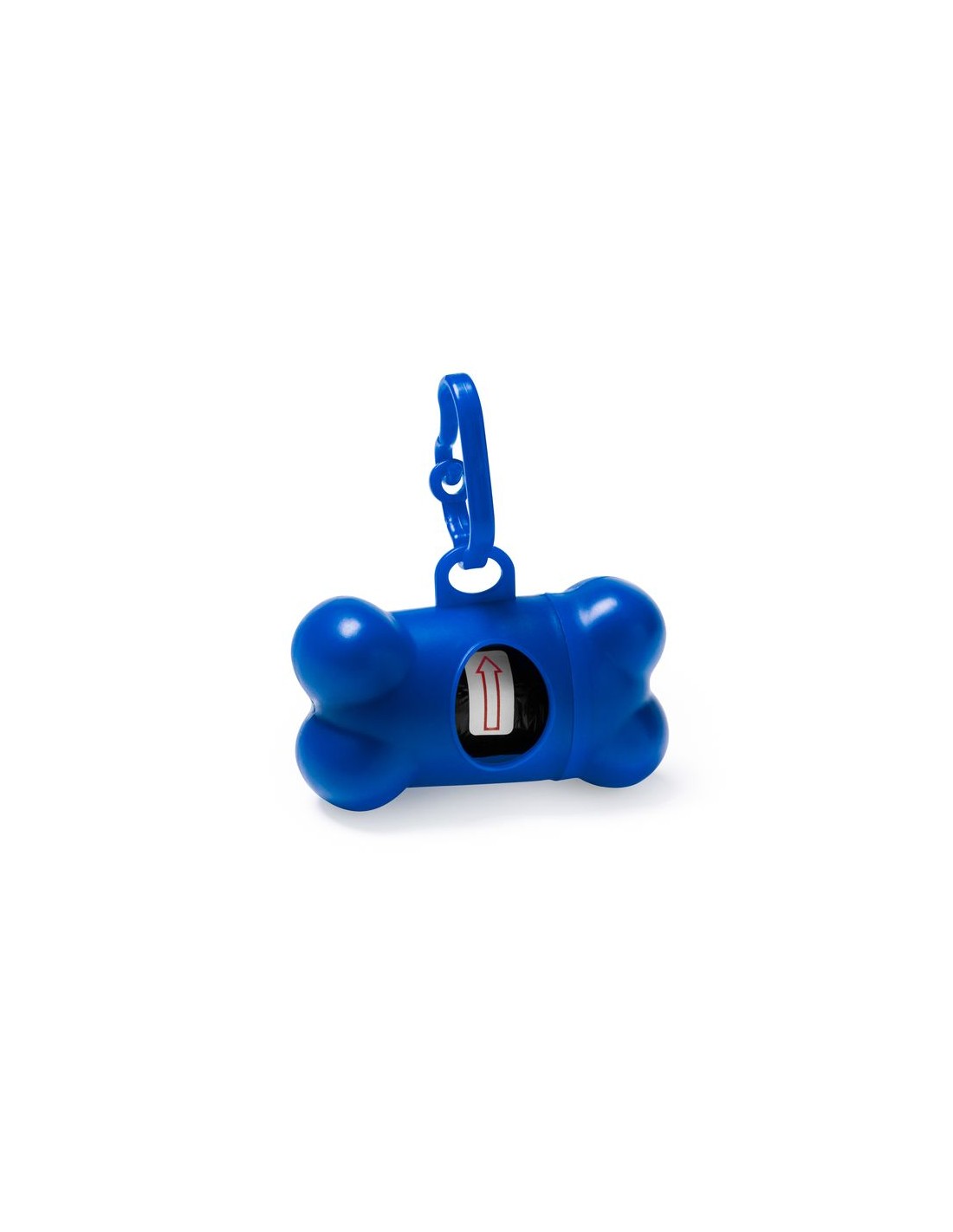 Distributore di sacchetti per animali con moschettone abbinato, include 15 sacchetti, disponibile in vari colori.