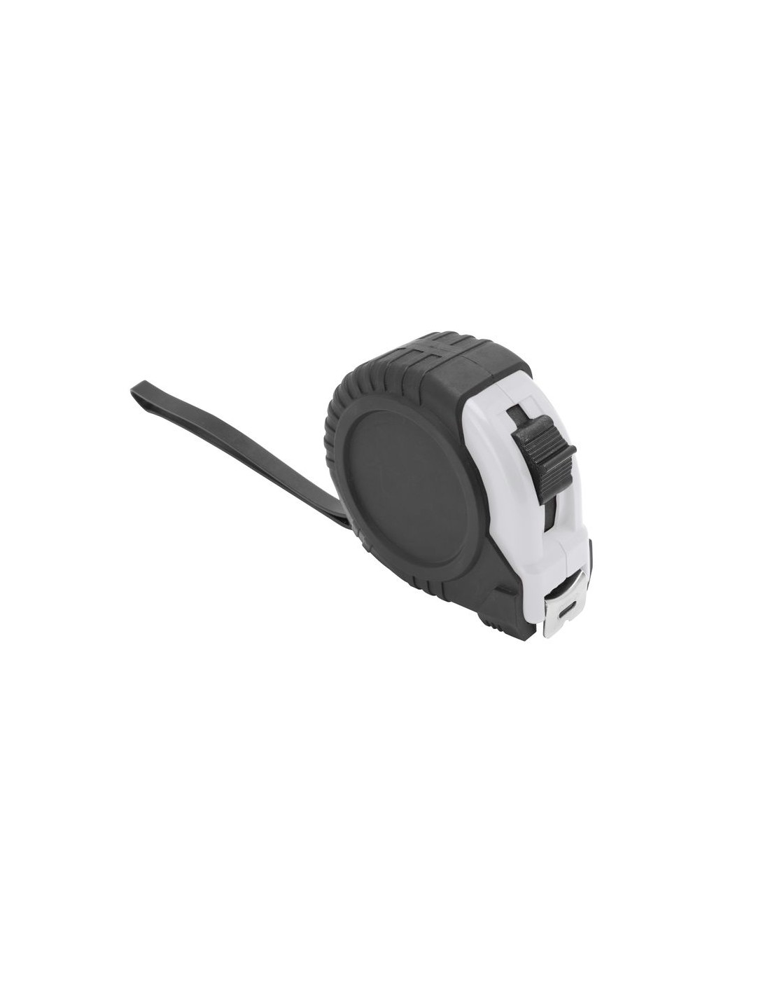 Flessometro omologato da 3 metri con meccanismo di bloccaggio e nastro in metallo, corpo colorato con copertura in gomma, clip in metallo e maniglia, confezione in scatola singola.