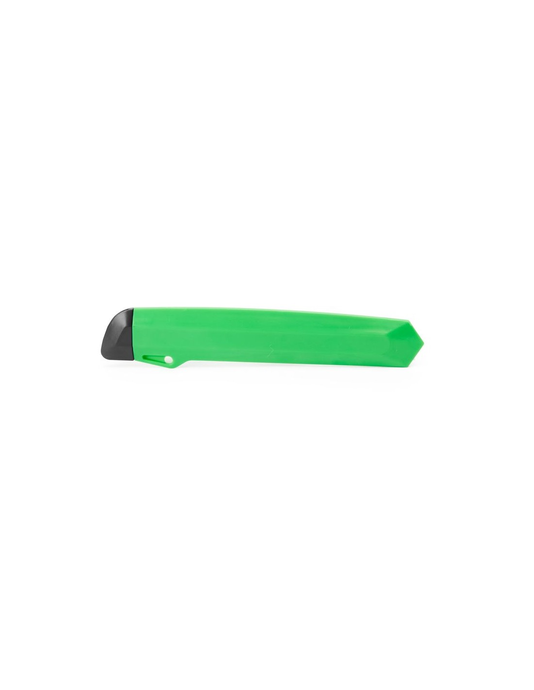 Taglierino a lama larga e corpo in ABS, impugnatura ergonomica fustellata e cappuccio rimovibile per il taglio e la regolazione della lama.
