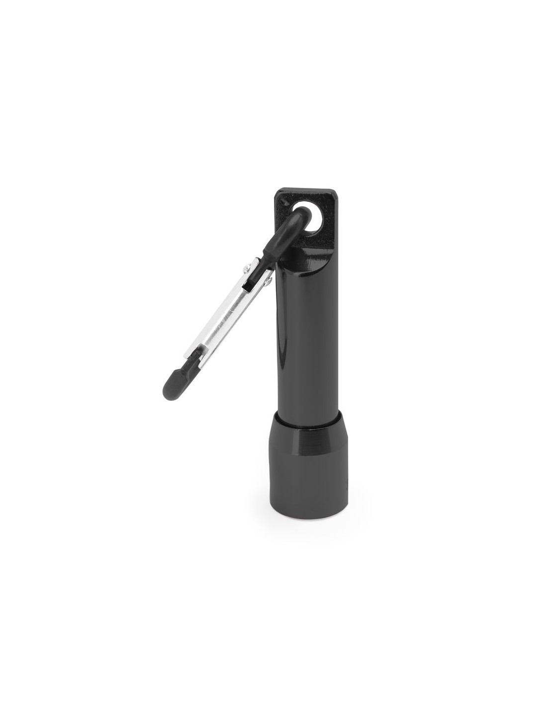 Torcia con 1 luce LED a batteria, disponibile in vari colori metallici con moschettone in tinta.