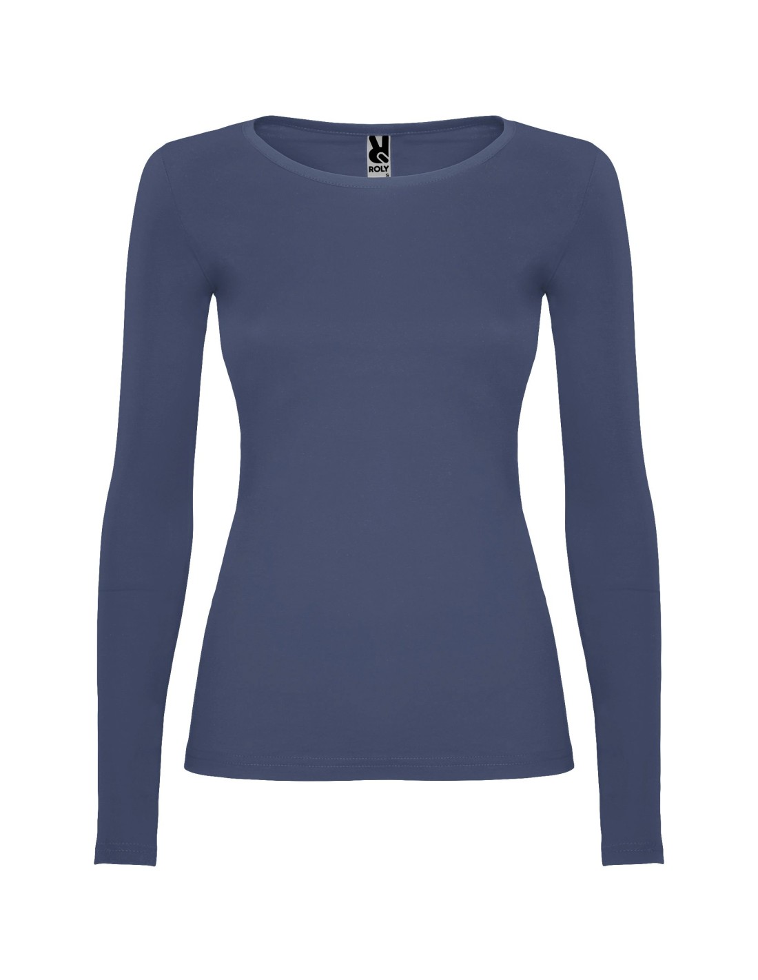 T-shirt semi-aderente, manica lunga e colletto sottile, senza polsini, cuciture laterali.