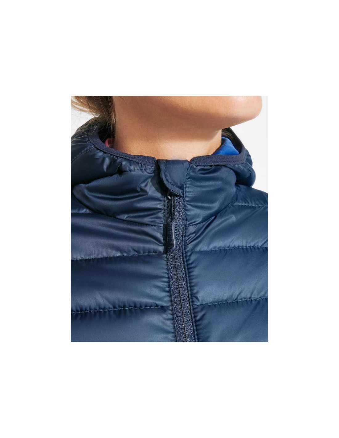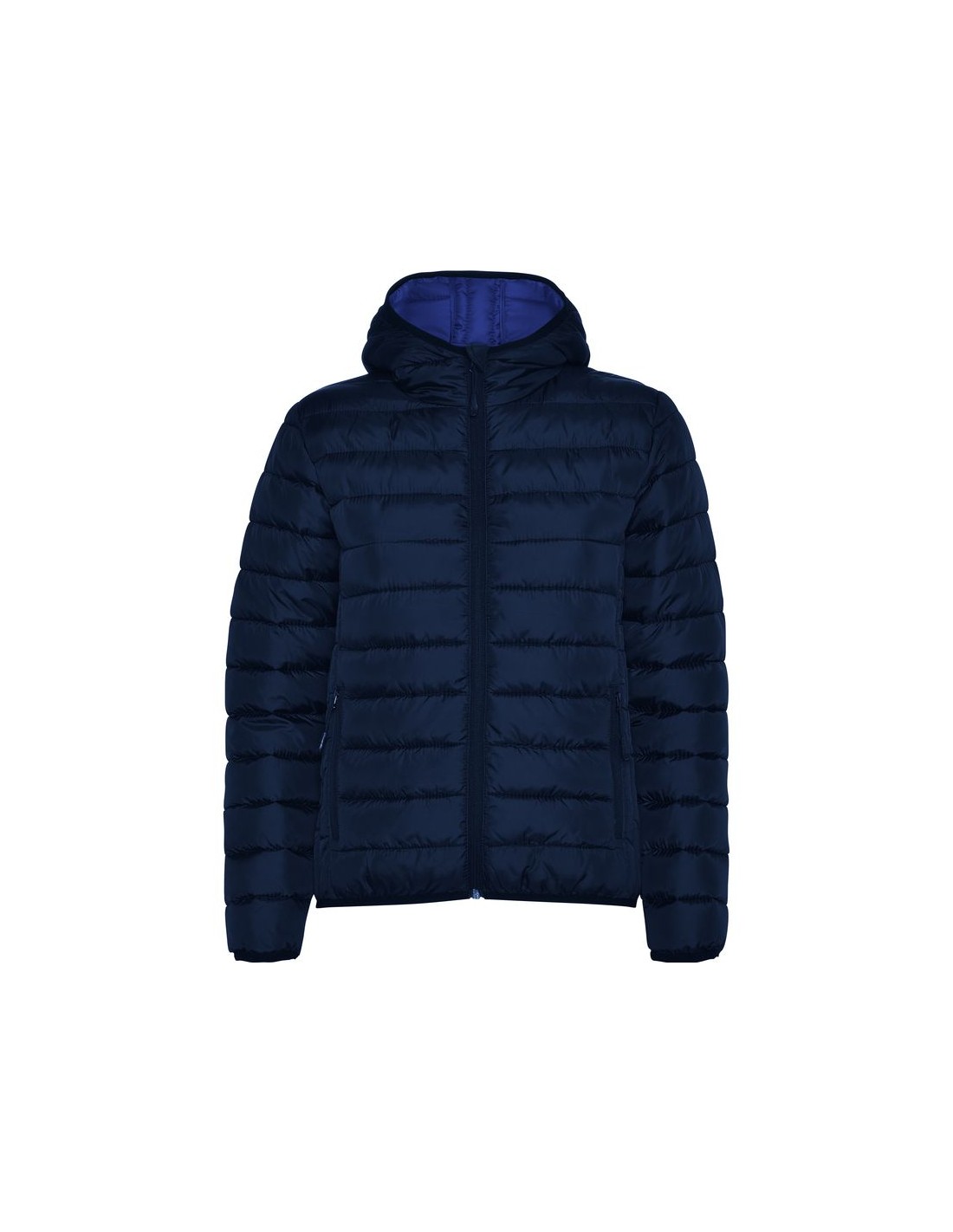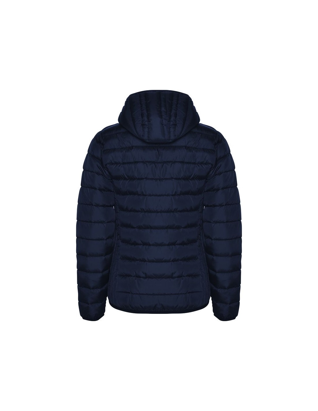 Giacca da donna trapuntata con imbottitura tatto piuma e cappuccio regolabile, cerniera invertita in tinta con protezione mento, due tasche frontali con cerniere, orlatura elastica in tinta su polsini, girovita e apertura del cappuccio, rivestimento interno a contrasto, include custodia per il trasporto, capo di abbigliamento leggero e pieghevole, taglio aderente.
