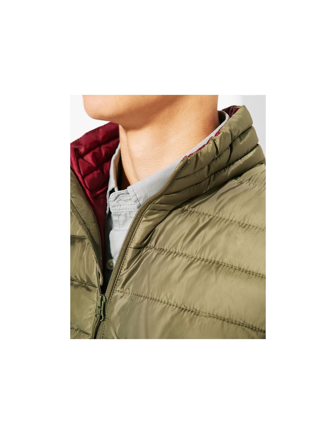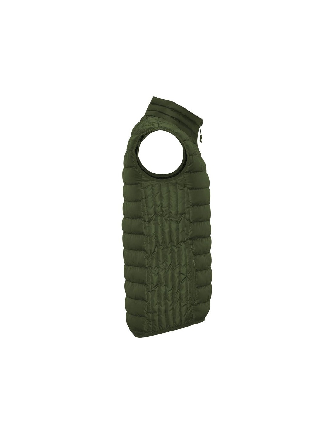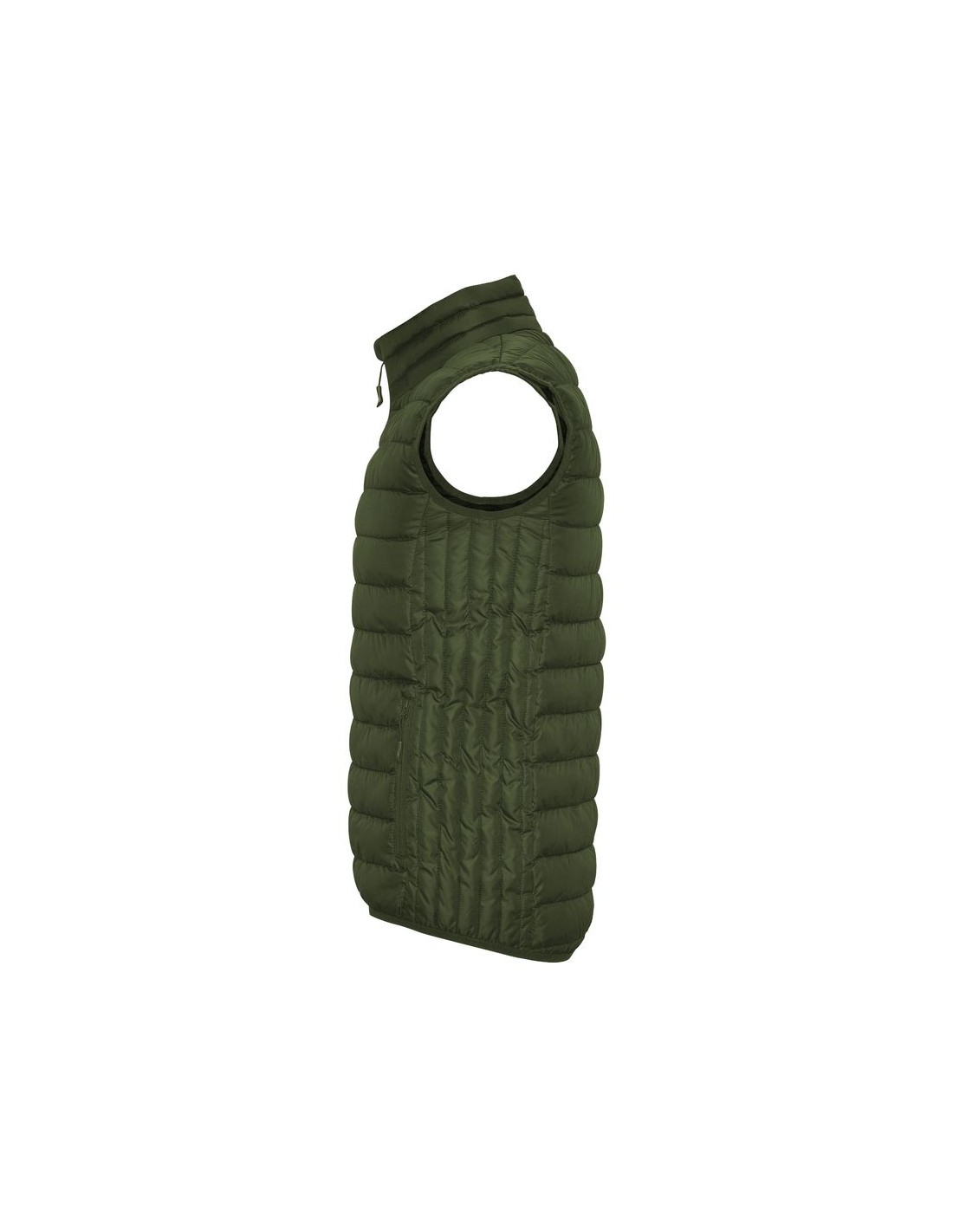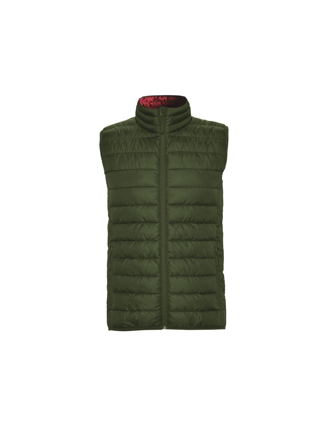 Gilet da uomo trapuntato con imbottitura tatto piuma, cerniera invertita in tinta, due tasche frontali con cerniera, rivestimento interno a contrasto, orlatura elasticizzata in tinta sul girovita, include custodia per il trasporto, capo di abbigliamento leggero e pieghevole, taglio aderente nel modello per donna.