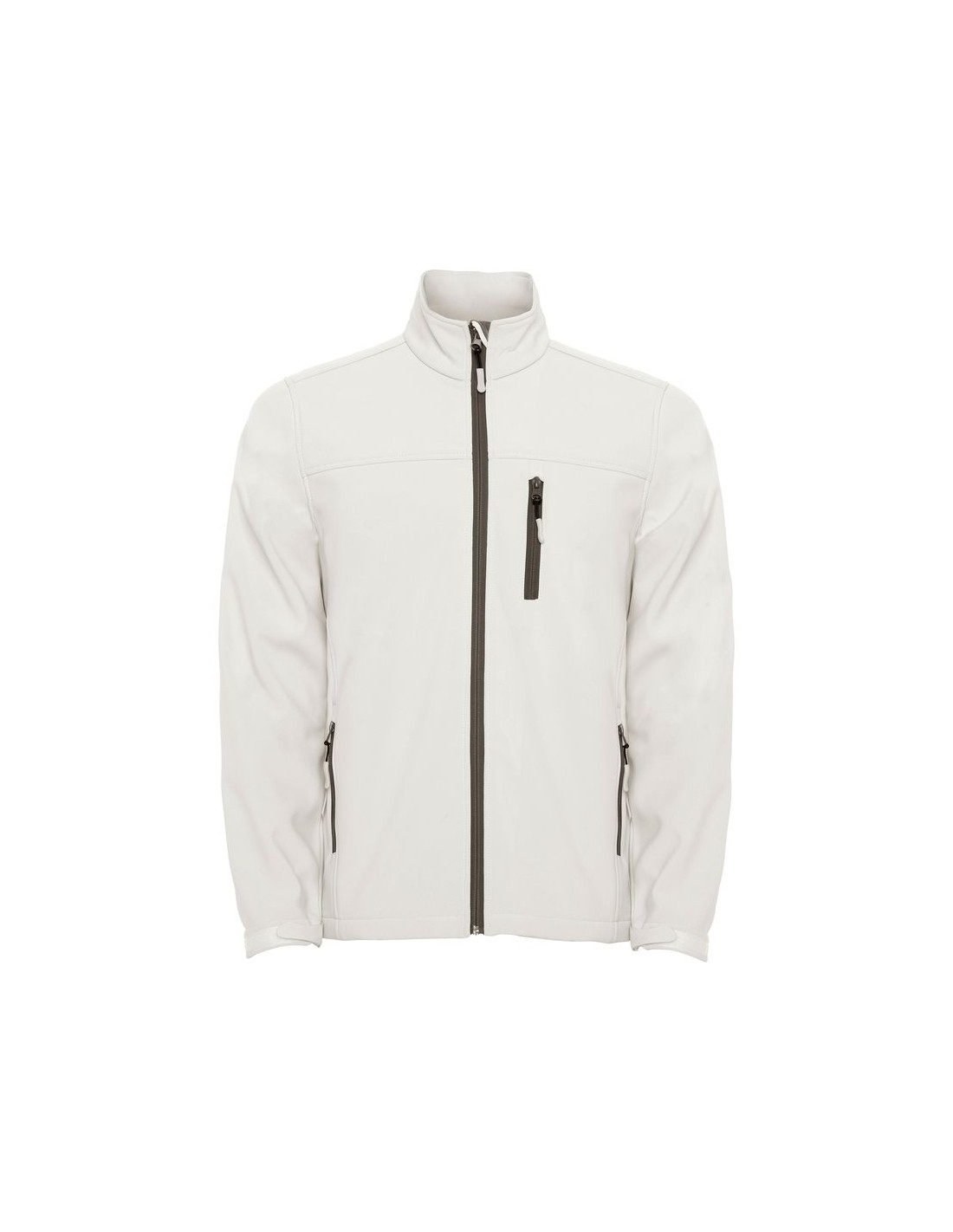 Softshell doppio strato, cerniera invertita, effetto sigillato, con protezione del mento e tiretto, cucitura sul petto (solo modello maschile) tre taschini esterne con cerniera e tiretto, regolatori sul polso con velcro, girovita con regolatori laterali interni.