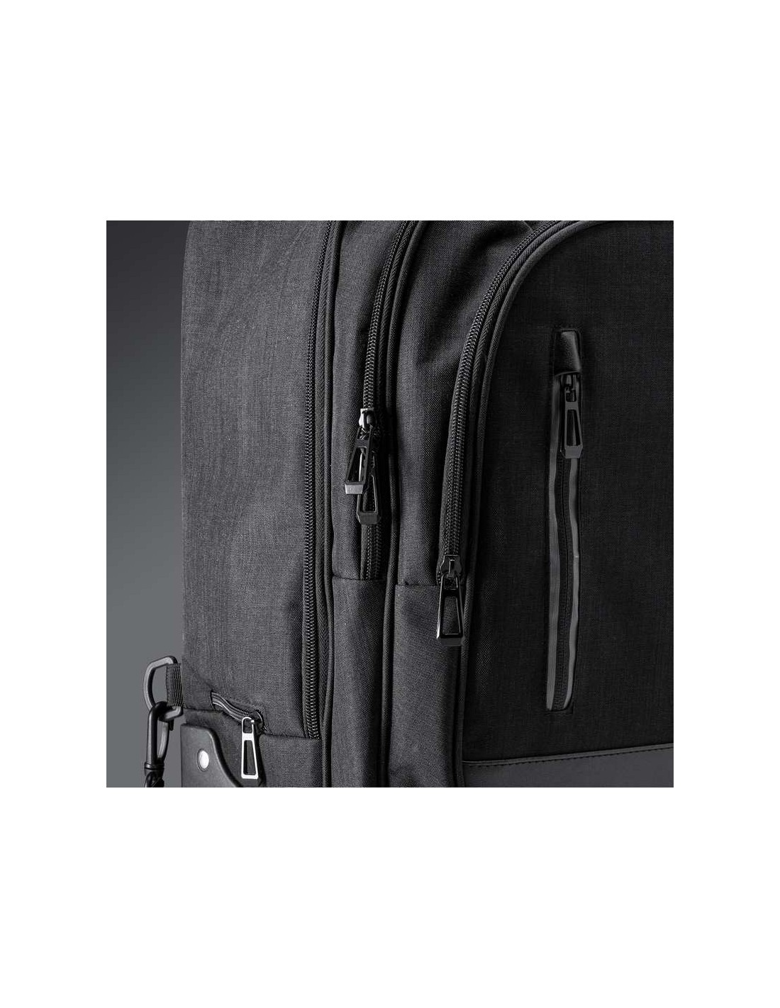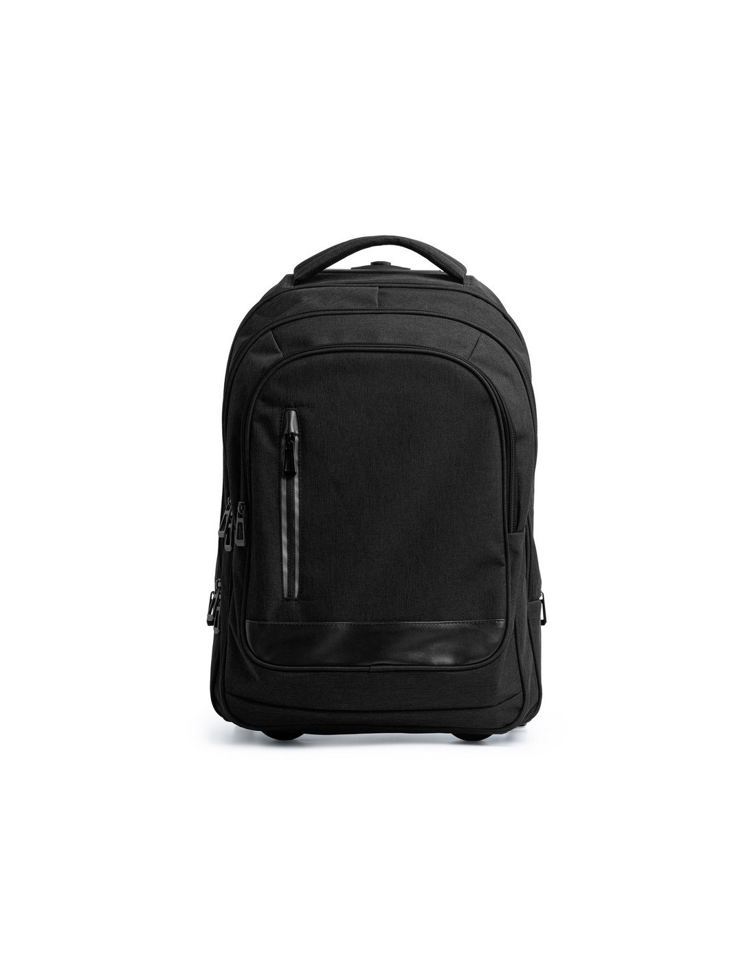 Zaino trolley con ruote realizzato in poliestere mélange 300D, tasca principale spaziosa con scomparto interno imbottito, ideale per computer portatili fino a 15'', due tasche con scomparti interni e una tasca frontale, struttura resistente e di alta qualità, spallacci imbottiti e regolabili, copriruota resistenti alle macchie.