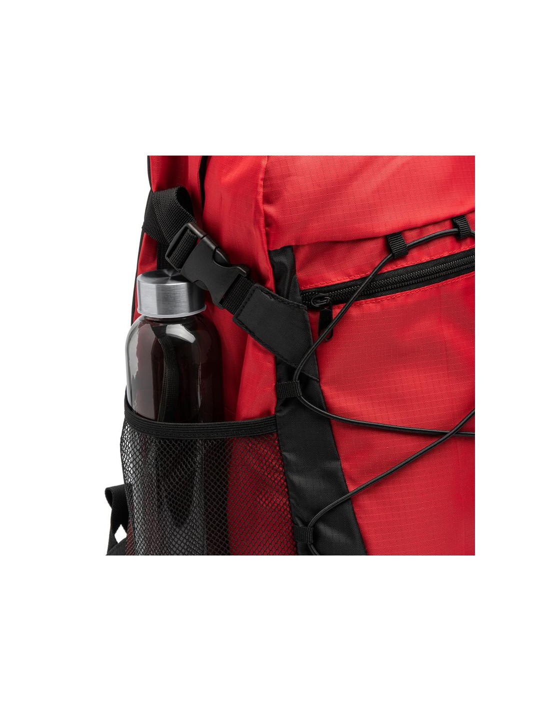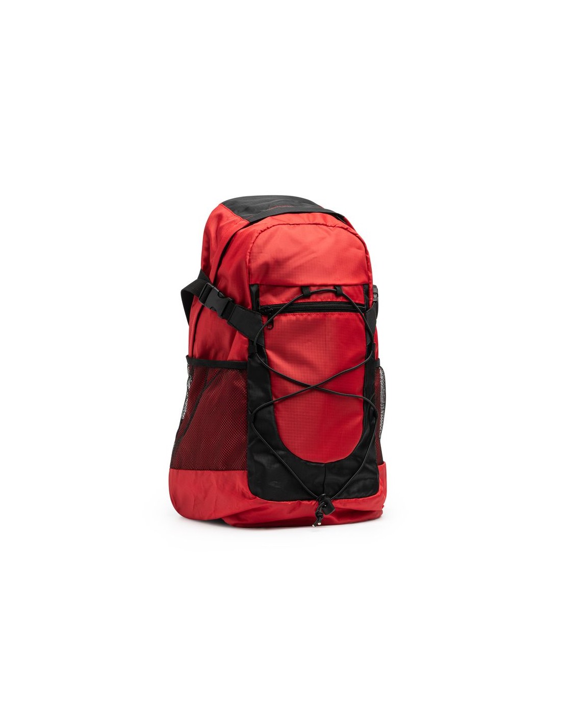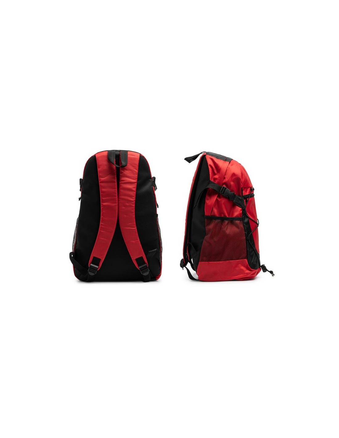 Zaino sportivo in nylon ripstop 210D ad alta resistenza, capacità 30 litri, doppio scomparto principale con chiusura a cerniera e tasche interne, scomparto anteriore con cordino elastico e tasche laterali a rete, schienale e spallacci imbottiti, cinghia laterale regolabile inclusa.