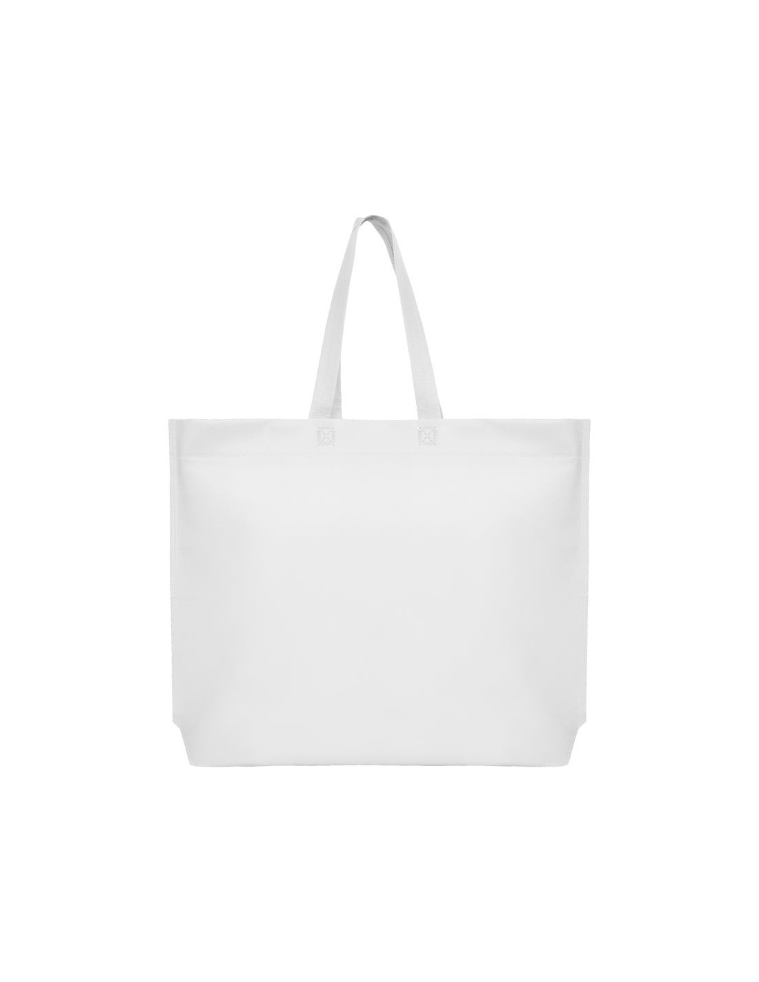 Borsa termosaldata con soffietto esagonale alla base, realizzata in tessuto non woven (TNT), con manici lunghi a nastro dello stesso colore.